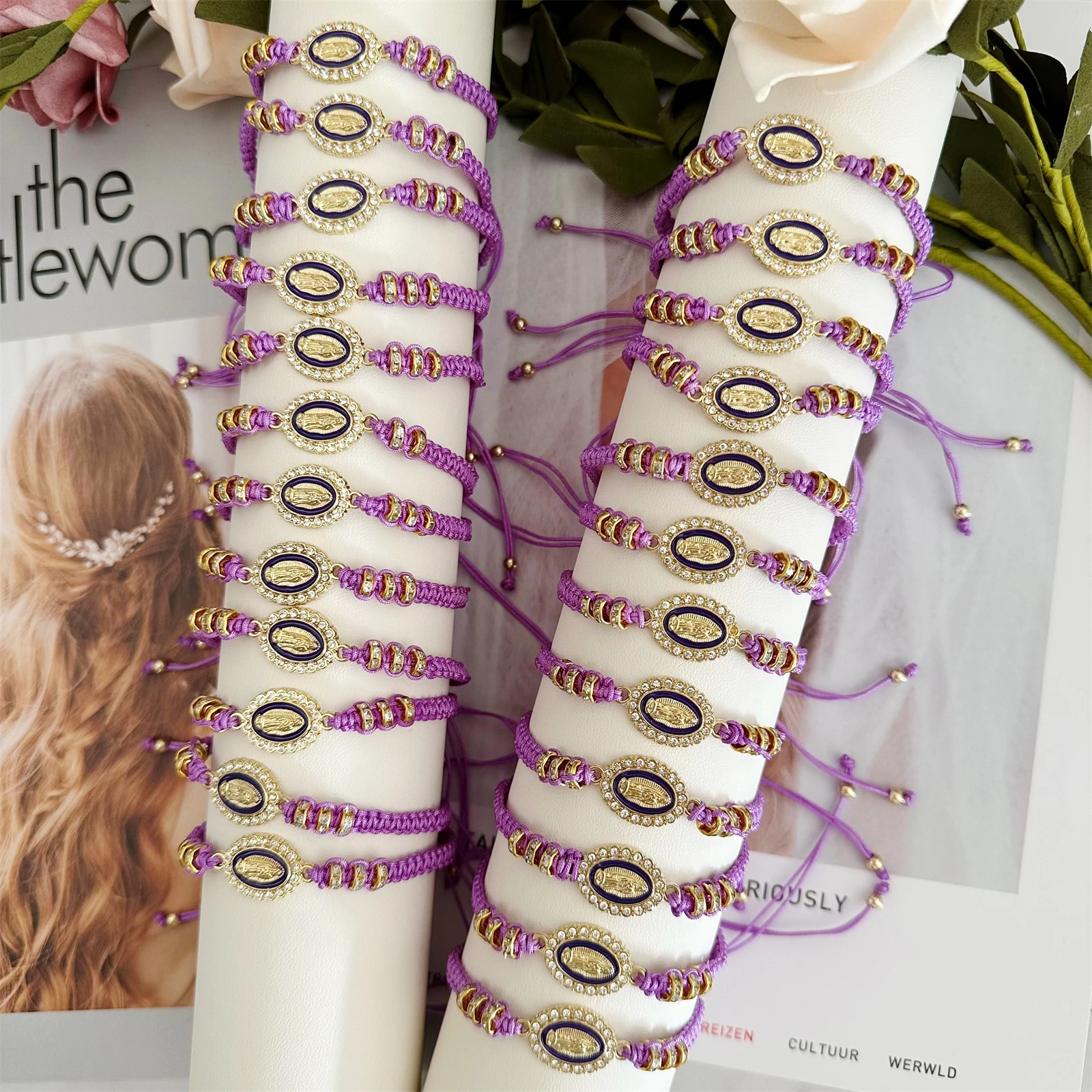 24PCS/Set Handmade String Virgin Mary Mexican Braclets Sain jude Bracelets For Men Women Girls Protection Bracelets Adjustable Braided Bracelet Anklets Jewelry Cute Christmas Gift